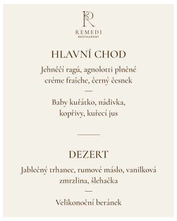 Během celého pobytu bude naše restaurace servírovat lahodné velikonoční menu plné tradičních chutí.